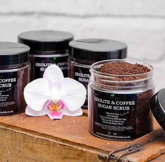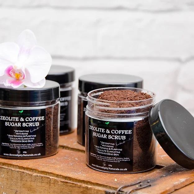 - Dark Muscovado sugar & ground coffee to help exfoliate.