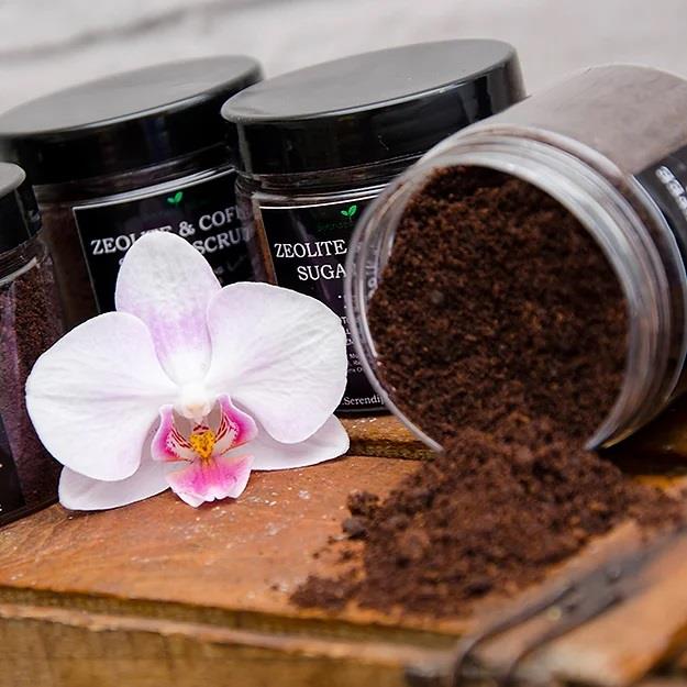 * Detoxifying * Anti-Aging * Skin Toning & Purifying * Cellulite Eliminating * Removes Dead Skin Ingredients: Dark Muscovado Sugar, Coffea Arabica, Zeolites, Citrus Sinensis Oil, Ricinus Communis Oil, Prunus Amygdalus Dulcis Oil, Olea Europaea Fruit Oil
