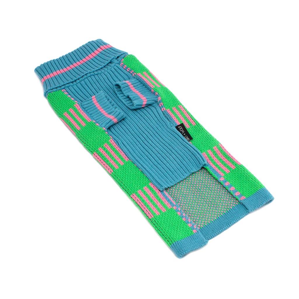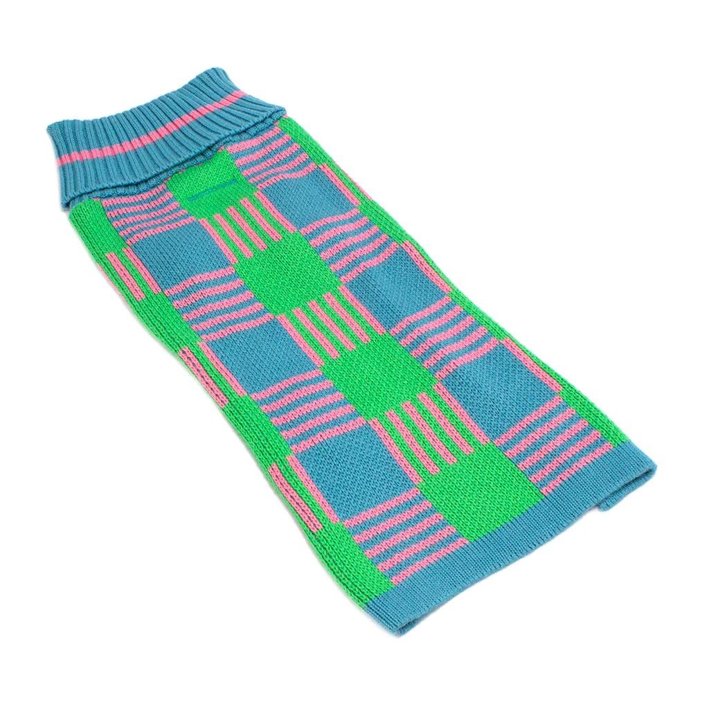 About the print: Our original 'Margate Gingham' design was inspired by our beautiful seaside location. Margate's famous Golden Sands beach, lively promenade, and ever-growing art culture make Margate a great town for tourists. This jumper's pattern reflect the vibrant colours of staple Margate holidays, such as the blue sea, the green of popular parks, and the pink candyfloss on promenade. Warm, washable, breathable, and ethically made by artisans in India. This dog and puppy jumper was skilfully made using 100% cotton, including 50% recycled yarns (unlike mass produced jumpers). The incredibly soft material keeps your beloved pet cosy and warm, protecting them from cold autumn and winter weather. It’s durable and machine washable, so muddy walks will never be an issue! Our original Hiro + Wolf jumper designs suit all doggies, with three sizes to choose from. Whether your dog is an urban pup or a country canine, this trendy jumper is pawfect for any occasion. Ethically made in India by artisan Sriniv and his talented team. Their workshop is SA800 certified and accredited by the Ethical Fashion Forum.