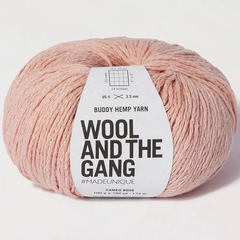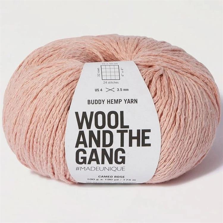 Wool and the Gang Buddy Hemp. A plant-powered earth-loving wonder yarn made from all natural goodness! This heroic blend of organic cotton and hemp is light, airy and soft with great stitch definition, texture and drape - a dream yarn for all your summer essentials. It's linen-like handle lets you crochet, knit and macramé your way to breezy, open-stitch creations.