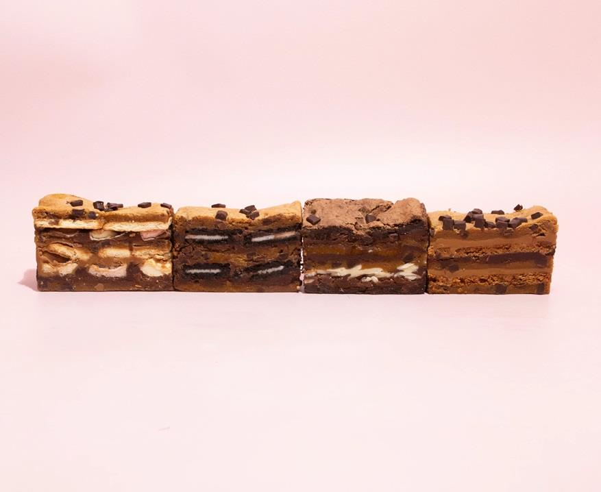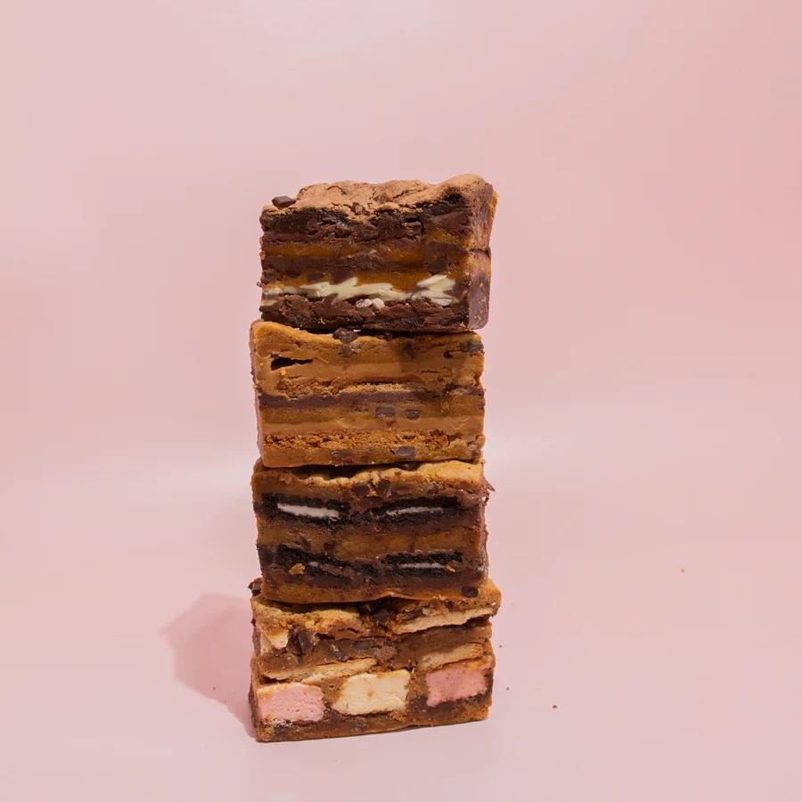 SHELF LIFE: 10 DAYS at room temperature - keep sealed & in a cool place. Can be frozen for up to 3 months. STACKS OF ALL THE GOOD STUFF.. layers of cookie dough, sauces, ganache, biscuits..heavenly, indulgent, delicious What's in each box? You get one chunky slice of each flavour Biscoff - layers of choc chunk cookie dough, biscoff spread, biscoff biscuits & chocolate ganache Triple choc - a choc mud dough with layers chocolate ganache, white choc and choc chunk cookie dough S'mores - choc chunk cookie dough layered with biscoff spread, chocolate ganache, marshmallows & biscuits Oreo & Notella - soft n gooey choc chunk cookie dough sandwiched with layers of oreos, chocolate ganache and a delicious vegan hazelnut chocolate spread Our bakes are beautifully wrapped in our signature greaseproof paper, packaged in a box & sealed with a sticker, to ensure you have the best experience when receiving your The Vegan Bakes box. All treats are handmade in small batches from scratch in our 5 star rated kitchen. SHELF LIFE: 10 DAYS at room temperature - keep sealed & in a cool place. Can be frozen for up to 3 months. INGREDIENTS: BISCOFF: Flour (WHEAT flour, Calcium Carbonate (E170), Iron, Nicotinamide (Vit B3), Thiamine Hydrochloride (Vit B1)), Sugar, Dark Chocolate (Cocoa Mass, Sugar, Cocoa Butter, SOYA Lecithin E322), SOYA drink (Water, Hulled (7%):Soya Bean:, Tri-calcium Phosphate, Maltodextrin, Flavouring substance, Stabiliser:Gellan Gum:, Vitamin B2, Vitamin D2, Vitamin B12), Vegan spread (Vegetable Oils (Rapeseed Oil, Palm Oil), Water, Salt, Emulsifier (Mono & Diglycerides of Fatty Acids), Preservative (Potassium Sorbate), Colour (Annatto Bixin, Curcumin), Acidity Regulator (Citric Acid), Flavouring), Vegetable Oil, Rapeseed Oil, Lotus Biscuits (WHEAT Flour, Sugar, Vegetable Oils (Palm Oil from sustainable and certified plantations, Rapeseed Oil), Candy Sugar Syrup, Raising Agent (Sodium Hydrogen Carbonate), Soya Flour, Salt, Cinnamon), Lotus Biscoff Spread (Original Caramelised Biscuits 58% (WHEAT Flour, Sugar, Vegetable Oils (certified sustainable Palm Oil, Rapeseed Oil), Candy Sugar Syrup, Raising Agent (Sodium Hydrogen Carbonate), SOYA Flour, Salt, Cinnamon), Baking Powder (WHEAT Flour, Calcium Carbonate, Iron, Niacin, Thiamin), Raising Agents: Sodium Acid Pyrophosphate E450i, Sodium Bicarbonate E500 (ii), Vanilla Extract (Water, Flavouring, Colour: Caramel (E150), Sodium Bicarbonate, Salt TRIPLE CHOC: Flour (WHEAT flour, Calcium Carbonate (E170), Iron, Nicotinamide (Vit B3), Thiamine Hydrochloride (Vit B1)), Sugar, Dark Chocolate (Cocoa Mass, Sugar, Cocoa Butter, SOYA Lecithin E322), SOYA drink (Water, Hulled (7%):Soya Bean:, Tri-calcium Phosphate, Maltodextrin, Flavouring substance, Stabiliser:Gellan Gum:, Vitamin B2, Vitamin D2, Vitamin B12), Vegan spread (Vegetable Oils (Rapeseed Oil, Palm Oil), Water, Salt, Emulsifier (Mono & Diglycerides of Fatty Acids), Preservative (Potassium Sorbate), Colour (Annatto Bixin, Curcumin), Acidity Regulator (Citric Acid), Flavouring), Vegetable Oil, Rapeseed Oil, Vegan White Chocolate (Sugar, cocoa butter [32%], rice flour, coconut oil, flavouring (vanilla), emulsifier (sunflower lecithin). Emulsifier (SOYA Lecithin), Acid (Citric Acid)), Baking Powder (WHEAT Flour, Calcium Carbonate, Iron, Niacin, Thiamin), Raising Agents: Sodium Acid Pyrophosphate E450i, Sodium Bicarbonate E500 (ii), Cocoa Powder (96,16%), acidity corrector (potassium carbonate) (3,84%), Vanilla Extract (Water, Flavouring, Colour: Caramel (E150), Sodium Bicarbonate, Salt S'MORES: Flour (WHEAT flour, Calcium Carbonate (E170), Iron, Nicotinamide (Vit B3), Thiamine Hydrochloride (Vit B1)), Sugar, Dark Chocolate (Cocoa Mass, Sugar, Cocoa Butter, SOYA Lecithin E322), SOYA drink (Water, Hulled (7%):Soya Bean:, Tri-calcium Phosphate, Maltodextrin, Flavouring substance, Stabiliser:Gellan Gum:, Vitamin B2, Vitamin D2, Vitamin B12), Vegan spread (Vegetable Oils (Rapeseed Oil, Palm Oil), Water, Salt, Emulsifier (Mono & Diglycerides of Fatty Acids), Preservative (Potassium Sorbate), Colour (Annatto Bixin, Curcumin), Acidity Regulator (Citric Acid), Flavouring), Vegetable Oil, Rapeseed Oil, Marshmallows (Glucose-fructose syrup, sugar, water, modified tapioca starch, corn starch, gelling agent: carageenan; hydrolysed rice protein, flavourings & colours), Corn Starch, Water, Citric acid, Acidity Regulator (E331), Flavoruing, vegetable Oil (Palm), Colours (E129, E133, E102), Rich Tea Biscuits (Fortified WHEAT Flour (WHEAT Flour, Calcium Carbonate, Iron, Niacin, Thiamin), Sugar, Palm Oil, Partially Inverted Sugar Syrup, Barley Malt Extract, Salt, Raising Agents: Sodium Hydrogen Carbonate, Ammonium Hydrogen Carbonate:, Emulsifier:Mono- and Diacetyl Tartaric Acid Esters of Mono- and Diglycerides of Fatty Acids), Lotus Biscoff Spread (Original Caramelised Biscuits 58% (WHEAT Flour, Sugar, Vegetable Oils (certified sustainable Palm Oil, Rapeseed Oil), Candy Sugar Syrup, Raising Agent (Sodium Hydrogen Carbonate), SOYA Flour, Salt, Cinnamon), Baking Powder (WHEAT Flour, Calcium Carbonate, Iron, Niacin, Thiamin), Raising Agents: Sodium Acid Pyrophosphate E450i, Sodium Bicarbonate E500 (ii), Cocoa Powder (96,16%), acidity corrector (potassium carbonate) (3,84%), Vanilla Extract (Water, Flavouring, Colour: Caramel (E150), Sodium Bicarbonate, Salt OREO & NOTELLA: Flour (WHEAT flour, Calcium Carbonate (E170), Iron, Nicotinamide (Vit B3), Thiamine Hydrochloride (Vit B1)), Sugar, Dark Chocolate (Cocoa Mass, Sugar, Cocoa Butter, SOYA Lecithin E322), SOYA drink (Water, Hulled (7%):Soya Bean:, Tri-calcium Phosphate, Maltodextrin, Flavouring substance, Stabiliser:Gellan Gum:, Vitamin B2, Vitamin D2, Vitamin B12), Vegan spread (Vegetable Oils (Rapeseed Oil, Palm Oil), Water, Salt, Emulsifier (Mono & Diglycerides of Fatty Acids), Preservative (Potassium Sorbate), Colour (Annatto Bixin, Curcumin), Acidity Regulator (Citric Acid), Flavouring), Vegetable Oil, Rapeseed Oil, Oreos (WHEAT Flour, Sugar, Vegetable Oil (Palm), 