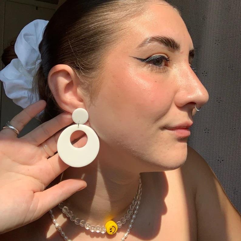 Earring Care, be sure to take off your earrings before showing or entering any type of water, also before sleep. Store the earrings in a cool and dry place and avoid placing earrings in direct sunlight for long periods of time.