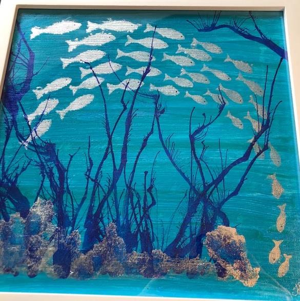 Acrylic Ocean Blues And Shoal Of Fish