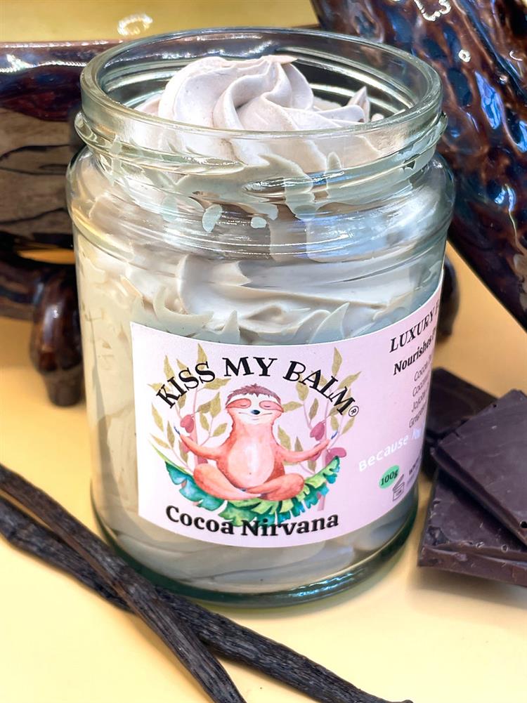 INGREDIENTS: COCOA BUTTER JOJOBA OIL COCONUT OIL GRAPESEED OIL PURE COCOA POWDER VITAMIN E OIL ARROWROOT FRAGRANCE