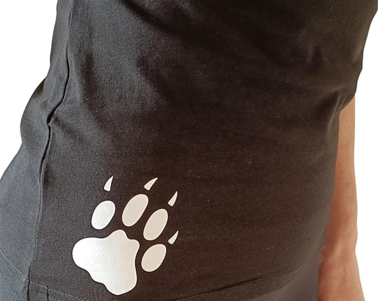 - The eye-catching claw logo adorns the hem.