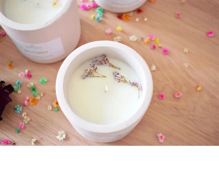 Our candles are made from 100% soy wax, which is a natural, non-toxic and renewable source. We use cotton wicks and real dried flowers, and we hand pour our candles into glass jars what makes them eco-friendly and biodegradable.