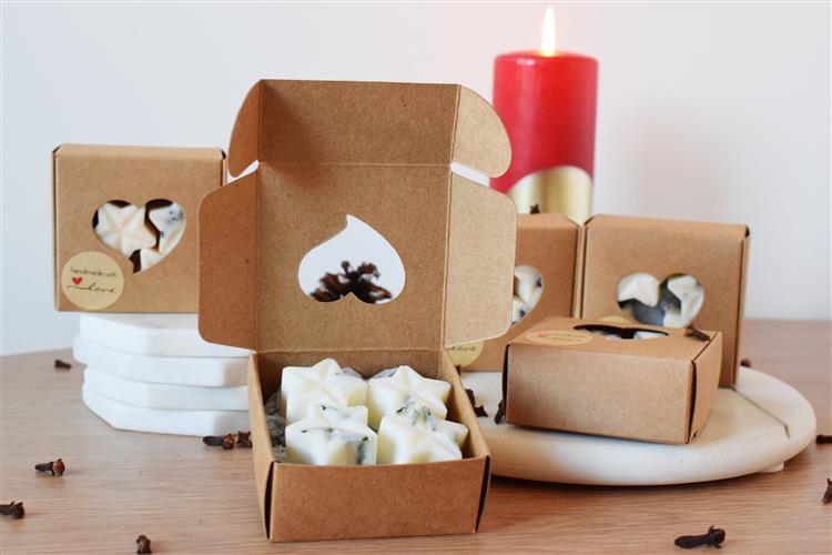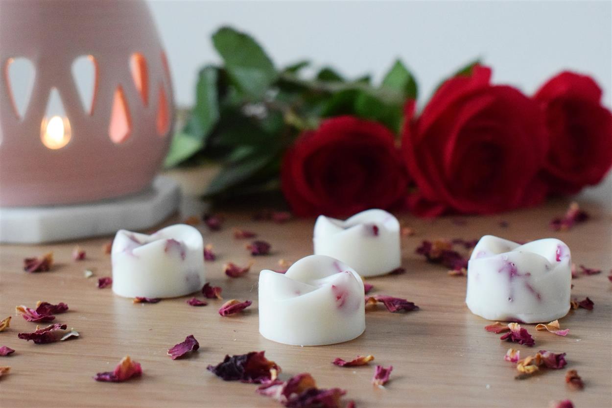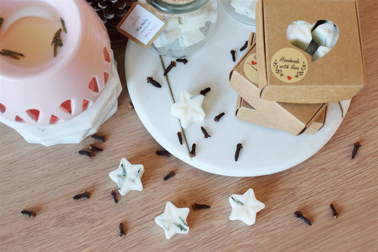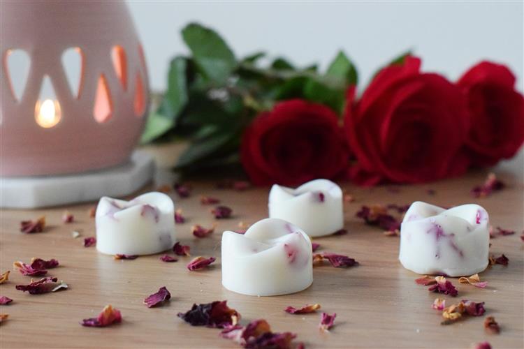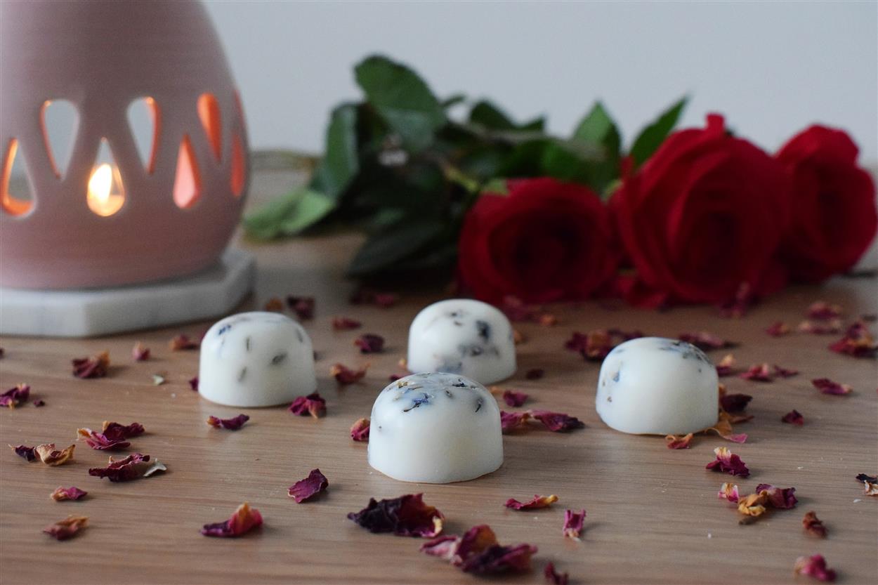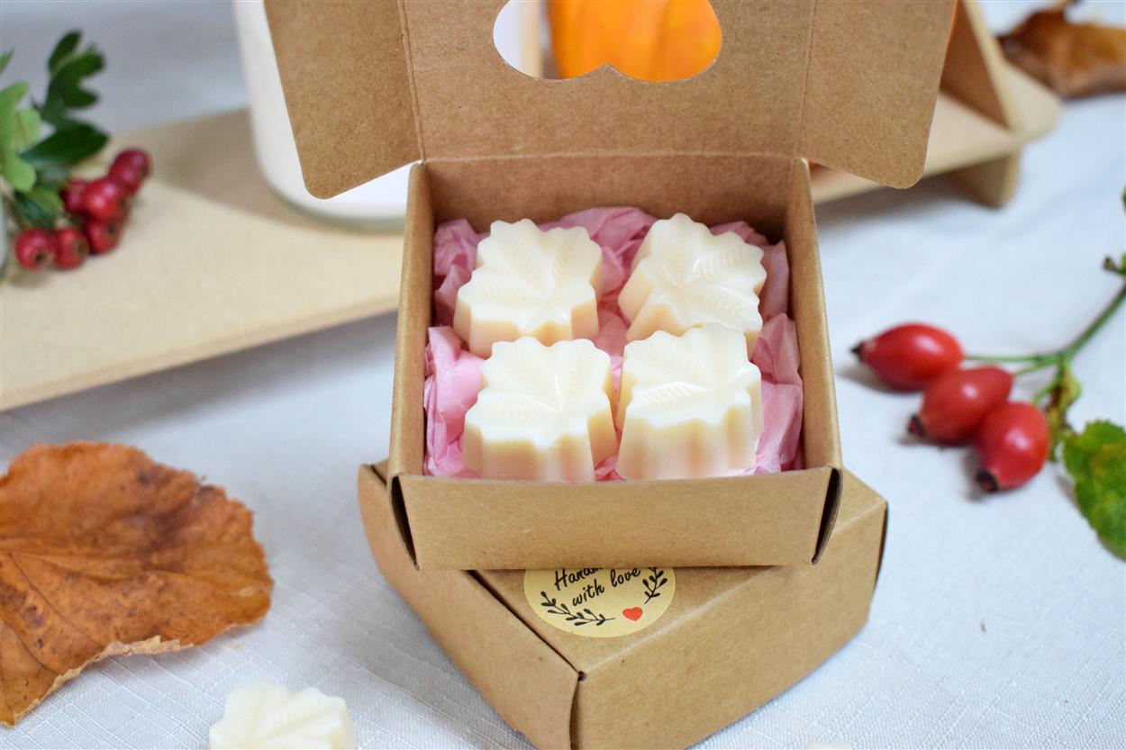The melts come in packs of 4 in a box. You can choose between five scents: ~ velvet rose ~ peony blush ~ lily of the valley ~ lavender meadow ~ bluebell woods - autumn leaves Our wax melts are made from 100% soy wax, which is a natural, non-toxic and renewable source. We use real dried flowers and high quality Fragrance Oils to deliver the best quality products to our customers.
