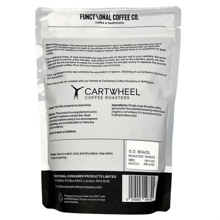 You want a simple way to incorporate Lion's Mane but you love coffee too much to replace it, we've got you! Add 15-16g of coffee and 225ml of hot water per cup to the Cafetiere, stir, steep and pour.