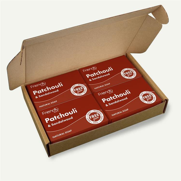 Elevate your skincare routine with the grounding scents of patchouli and sandalwood. Two timeless aromas known for their rich, woody character and calming effect on the senses. Friendly Soap’s Natural Patchouli Soap Bar combines the skin-soothing benefits of patchouli oil with the natural astringent qualities of sandalwood, helping to tighten pores and leave your skin feeling refreshed and balanced. Handcrafted in the UK with high-quality plant-based ingredients, this bar is vegan and free from SLS, parabens, and other harsh chemicals. Certified by The Vegan Society and Cruelty-Free International. 95g pH8-9 Ingredients: Sodium cocoate, Sodium rapeseedate, Aqua, Sodium shea butterate, Pogostemon cablin (patchouli) leaf oil, Pterocarpus soyauxii (sandalwood) wood extract