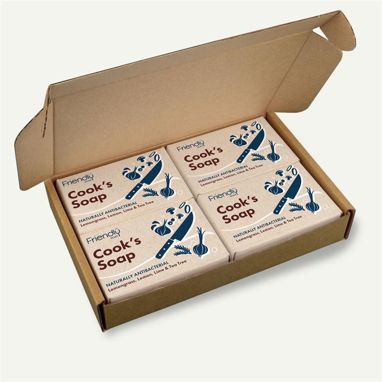 Friendly Soap’s Natural Cook’s Soap Bar is specially formulated for chefs, bakers, and cooks who need a reliable solution for stubborn kitchen odors. Handmade in the UK, it combines natural ingredients to keep your hands fresh and clean after a busy day in the kitchen. Bicarbonate of Soda: Tackles tough smells like garlic, onion, and herbs by breaking down persistent odors. Tea Tree Oil: Offers strong antibacterial benefits and a refreshing scent that enhances cleansing and deodorising. Lemongrass: Adds a zesty, invigorating aroma while neutralising unwanted smells, leaving hands smelling clean. This soap bar is a powerful and effective way to refresh your hands after cooking. 95g pH8-9 Ingredients: Sodium cocoate, Sodium rapeseedate, Aqua, Sodium shea butterate, Sodium bicarbonate, Melaleuca alternifolia leaf oil, Cymbopogon citratus leaf oil, Citrus limon peel oil, Citrus aurantifolia peel oil, Capsicum annuum fruit powder, Limonene*, Citral* *occurs naturally in essential oils.