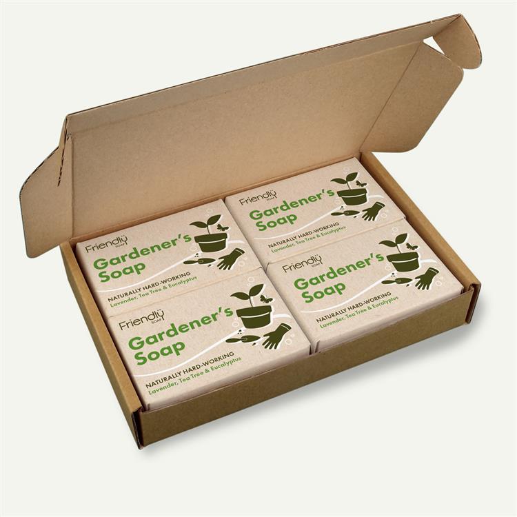 Friendly Soap’s Natural Gardening Soap Bar is made for green thumbs and hardworking hands. Packed with natural ingredients, it deeply cleanses, soothes, and cares for skin that’s been in the dirt all day. Comfrey: Known for its calming and healing properties, comfrey contains allantoin, which helps soothe irritation and support skin repair—ideal for minor scrapes and cuts. Volcanic Pumice & Poppyseed: These natural exfoliants help scrub away garden grime. Volcanic pumice provides a deep, effective cleanse, while poppyseed boosts exfoliation to remove hard skin and callouses. Aloe Vera: Hydrates and calms dry, irritated skin, keeping your hands soft and moisturised after time outdoors. Lavender: A gentle antiseptic with a calming scent, lavender helps cleanse and refresh your hands after a day in the garden. 95g pH8-9 Sodium shea butterate, Sodium cocoate, Sodium rapeseedate, Aqua, Pumice, Symphytum officinale leaf powder, Lavandula angustifolia oil, Melaleuca alternifolia leaf oil, Eucalyptus globulus leaf oil, Aloe barbadensis leaf juice powder, Papaver somniferum seed, Limonene*, Linalool* *occurs naturally in essential oils.