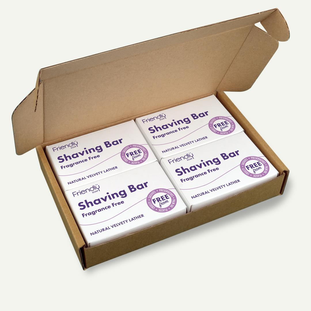 Friendly Soap’s ultra-gentle Natural Shaving Soap Bar is designed with sensitive skin in mind. Fragrance-free and made with a minimalist blend of carefully chosen ingredients, it delivers a smooth, refreshing shave without irritation. Formulated with rapeseed, coconut, and castor oils, plus kaolin clay and soy wax, it creates a rich lather that softens hair and cushions the skin for a close, comfortable shave. Perfect for those who prefer a fuss-free routine, no brush needed. Simply lather by hand and apply directly to damp skin after a shower or bath. A great choice for anyone who values simplicity, comfort, and effective skincare in one solid bar. 95g pH8-9 Ingredients: Sodium cocoate, Sodium rapeseedate, Aqua, Sodium castorate, Hydrogenated soybean oil, Kaolin (clay), Aloe barbadensis (aloe vera) leaf juice powder