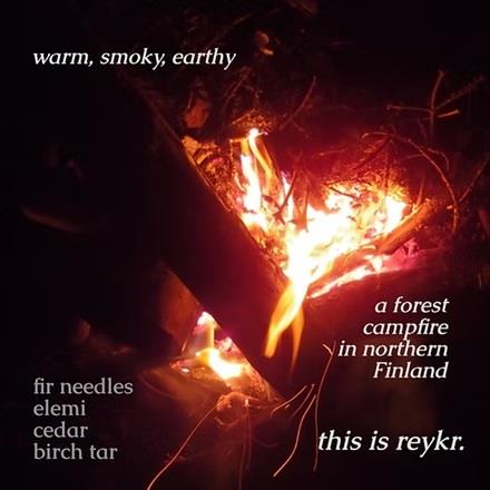 Warm, Smoky, Earthy "Reykr" is Norse for "Smoke" A warm, earthy fragrance capturing the essence of a forest campfire in Northern Finland Top notes of fir needles and elemi combine with a core of Himalayan cedar and base notes of dark, smoky birch tar Housed in a matte black recyclable glass vessel with a copper metallic logo Now made with our new signature 100% natural wax blend including British rapeseed oil and certified organic coconut 100% Natural Essential Oil Fragrance Recycled and Recyclable Packaging 10% of Profits Donated to Forest Preservation Charities Hand made and hand poured in the UK Refills available 80g