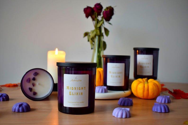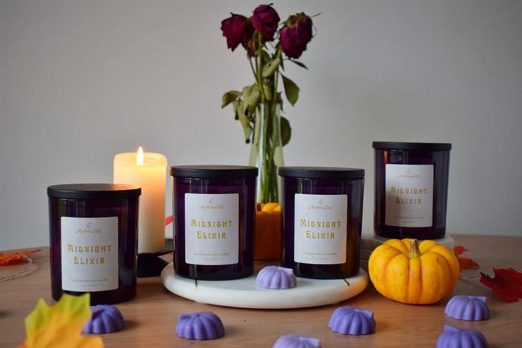 Midnight Elixir. The candle lit by the moon in the realm of mystery... It captures the essence of aromatic cedarwood with a blend of sweet apple and zesty grapefruit in an intoxicating dance with clove and cinnamon. Candle - 210 ml, burning time 35h