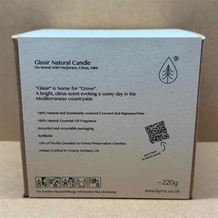 Bright, Refreshing, Uplifting "Glasir" is Norse for "Grove". A bright, citrus scent evoking a sunny day in the Mediterranean countryside