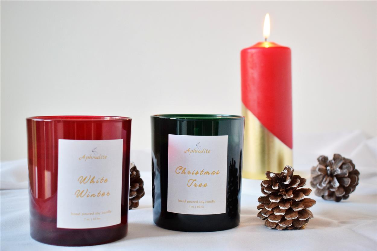 Christmas Candles are here! This year our Christmas candles are available in two scents: White Winter - is a warm spicy scent that has notes of cinnamon and cloves with a hint of fresh orange. 7oz -35hrs burn Christmas Tree - is a fresh fragrance of Siberian Pine