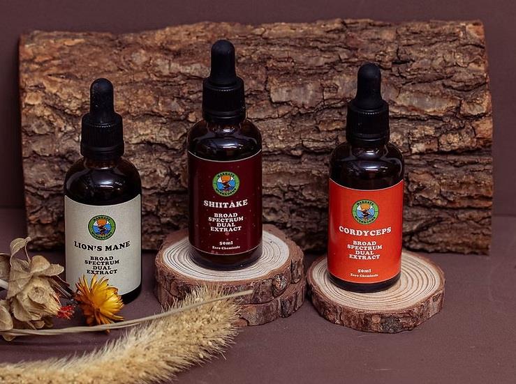 Shiitake Broad Spectrum Dual Extraction How to Use: Give the pipette a good squeeze until there is about 2cm worth of extract, and then take that directly on or under your tongue daily. Alternatively, we like to use it as wanted, especially when we're starting to feel a cold coming on! How is this product made? The Deep Decoction method of making a mushroom extract involves a thorough and prolonged hot water process to ensure maximum extraction of beneficial compounds from tough and fibrous mushroom materials. This method is particularly effective for mushrooms like shiitake. We grow and dry our own Shiitake on our farm just outside Margate, before putting them through the extraction process. We then add alcohol as a preservative. The final product will have at least 20% alcohol ABV. Lion’s Mane Broad Spectrum Dual Extract How to Use: Give the pipette a good squeeze until there is about 2cm worth of extract in it, and then take that directly on or under your tongue in the mornings How is this product made? Creating a broad-spectrum dual extraction of Lion's Mane mushrooms (Hericium erinaceus) involves combining water and alcohol extraction methods to capture the full range of beneficial compounds. This method ensures a potent and comprehensive extract that combines the advantages of both extraction techniques. We grow and dry all our own Lion's Mane on our farm just out side Margate, before putting them through the extraction process. The final product contains approx 35% alcohol. Suggested dose - take one or two squeezes of the pipette as required. Cordyceps Broad Spectrum Dual Extract How to Use: Like both the above, give the pipette a good squeeze until about 1ml of extract comes out, then take it directly on or under your tongue daily. Known for providing energy and aiding endurance, this Cordyceps militaris is Broad Spectral Dual Extract is brilliant for getting through a long drive, a difficult day or just perking up after a bad night's sleep. Make sure you shake these bottles well before use, otherwise you'll miss all the good stuff!