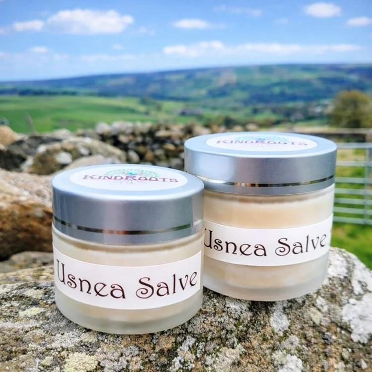 Usnea — often known as “old man’s beard” — is a pale, lichen that grows on trees in clean, undisturbed woodlands. For centuries, it has been gathered and included in simple salves and balms made to care for skin exposed to the elements, valued for its association with cleanliness, protection, and preservation. In traditional folk use, Usnea salves were applied to weathered hands, dry or cracked skin, minor grazes, and areas prone to irritation, particularly where skin needed calming and shielding rather than heavy treatment. It was also commonly used on skin after exposure to wind, cold, or heat — helping it feel more comfortable and looked after. Our Usnea Salve is made with a straightforward, nourishing base of coconut oil and beeswax, creating a firm, breathable salve that helps form a protective layer on the skin. This barrier helps lock in moisture while shielding delicate areas from further dryness or friction. The addition of lemongrass and geranium essential oils brings a fresh, clean scent and contributes to the salve’s traditional role in keeping skin feeling refreshed, balanced, and comfortable. Together, these ingredients create a versatile salve suited to everyday skin care needs. INGREDIENTS: Usnea extract, coconut oil, beeswax, geranium essential oil, lemongrass essential oil PLEASE NOTE: This product is a cosmetic salve for external use only. Not intended to diagnose, treat, or cure medical conditions.