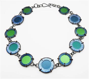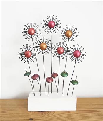 Ruby and Jack Design create hand made wire sculpture and jewellery from anodised aluminium and sterling silver. The pieces take the form of graphic prints of flowers, seedpods, and geometric shapes which resemble meadow grasses, flowers, birds, and fish.